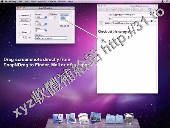 例如,通過電子郵件發送的截圖,你會拖截圖從SnapNDrag的郵件應用程序。就是這麼簡單。沒有